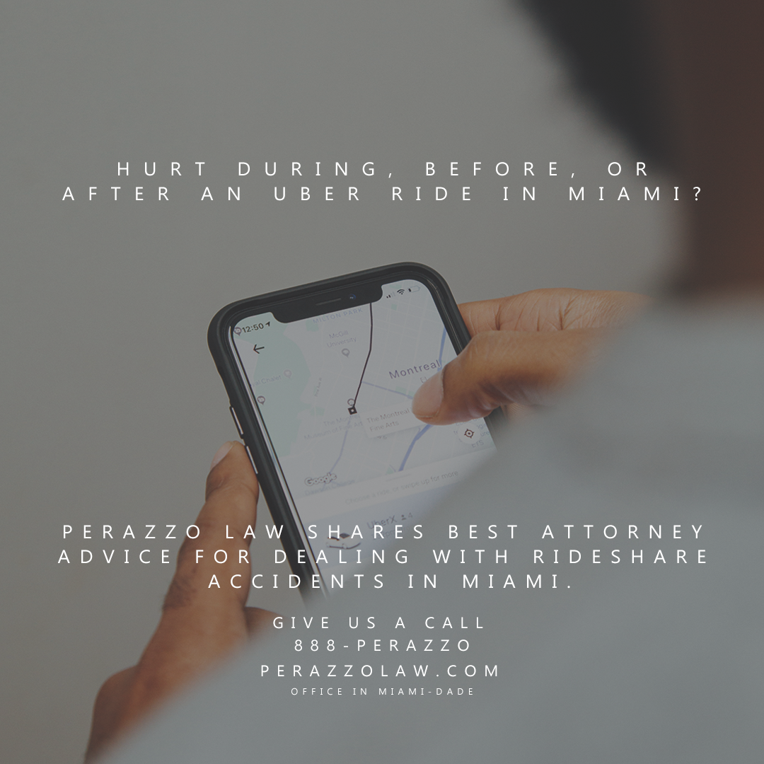 If you, a friend or relative has been involved in an Uber accident or suffered injury, damages, or losses as a result of an Uber driver’s negligence, in Miami, contact the Personal Injury Staff at the Perazzo Law Firm ONLINE for a FREE initial consultation and ZERO-OUT-OF-POCKET fees to our clients.